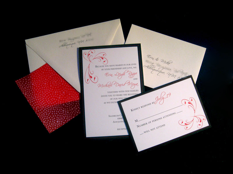 Our wedding gift to my brother and sister-in-law was to design and print their invitations. I did every step, from initial design and color coordination to folding and packaging.
